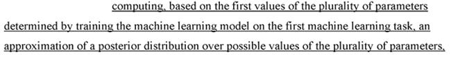 前記機械学習モデルが前記第1の機械学習タスクに関して許容可能なレベルの性能を維持しながら第2の機械学習タスクに関して許容可能なレベルの性能を達成するように、前記第1のパラメータ値を調整するために前記トレーニングデータに関して前記機械学習モデルをトレーニングすることによって前記第2の機械学習タスクに関して前記機械学習モデルをトレーニングする・・・
