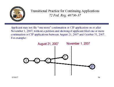 2007年8月21日〜11月1日までの期間に継続出願を何度できるか説明が不明瞭であったためUSPTOは2007年9月18日米国時間に以下のスライドを訂正した: